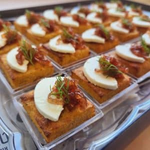 ריבועי פולנטה,גבינת עזים ובצל מקורמל